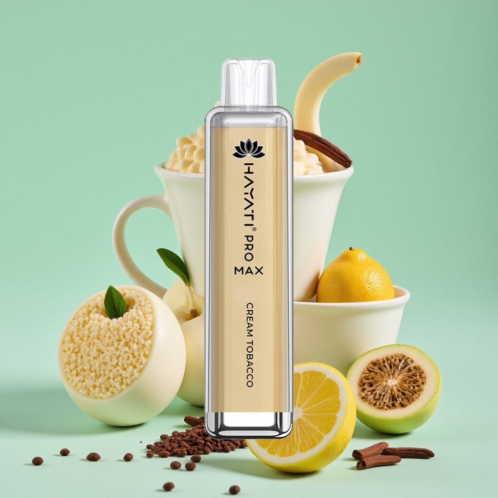 Hayati Pro Max 4000 Puffs Disposable Vape Kremo Tabakas, 2%/5% Nikotino, 1400mAh, 28×28×120mm
